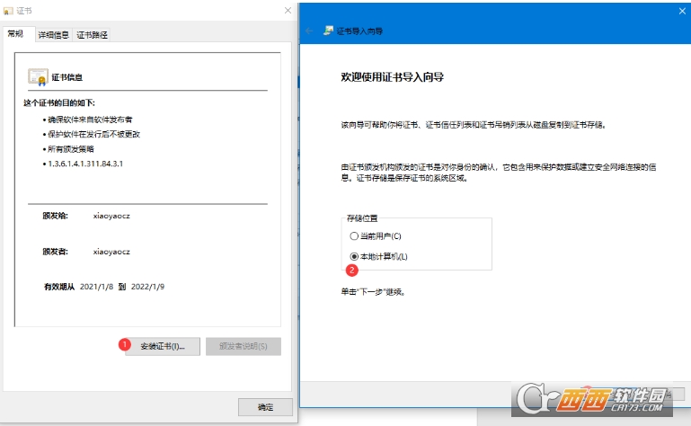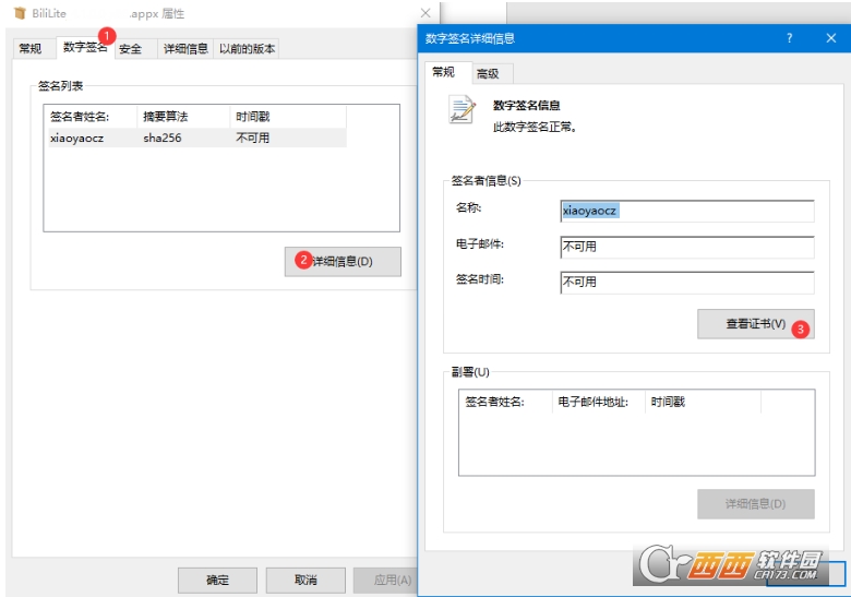 1、双击打开.cer证书文件。如果没有.cer证书文件则右键.appx文件-属性-数字签名-详细信息-查看证书