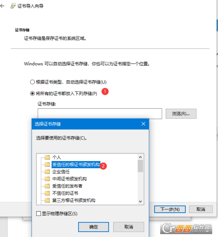 3、选择受信任的根证书颁发机构,下一步,完成即可