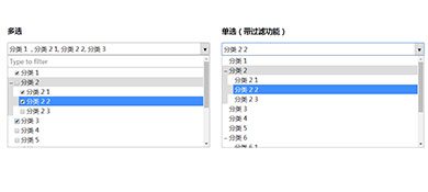 这是一款基于jQuery实现带多选和过滤功能的树状结构下拉框插件源码。点击文本框即可弹出相应的下拉框,在树状下拉框中选中各个选项之后,即可在文本框中输入相应的选项值。有多选与单选两种树状下拉框功能,建议使用支持HTML5与css3效果较好的火狐(Firefox)或谷歌(Chrome)等浏览器预览本源码。