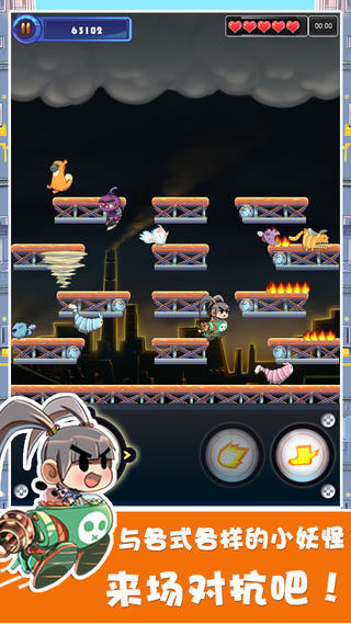 游戏玩法简单易懂,控制小萝莉击败当前关卡里的所有妖怪即可过关!游戏里还有许多丰富的道具来助你一臂之力!