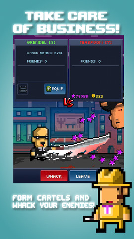 本作的玩法可以归结为两大点:战斗(Fighting)和抢票(Shakedown)。前者采用了回合制RPG的形式展开,画面下方会不断随机刷新出小弟,点击图标即可召唤小弟对敌人进行攻击,两次攻击中还有机会出现两个小弟共同攻击的Combo,以此可对敌人造成巨大伤害。说实话战斗新颖程度也就那样吧,更多是冲着属性和攻击方式不同的小弟的表演去的。